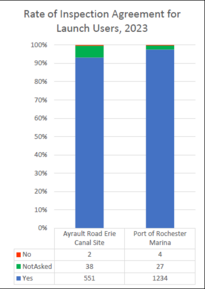 The District and the Monroe County Department of Environmental Services partner with the Finger Lakes Partnership for Regional Invasive Species Management (FLPRISM, http://fingerlakesinvasives.org/) to provide watercraft stewards every summer to conduct invasive species inspections on boat launches in the county. Stewards inspect boats before and after they are launched to make sure that invasive animal and plant species are not being brought by the boat into the water. Our stewards play an important role in preventing invasive species from damaging Lake Ontario, and educating the public as to what they can do to protect our waters.